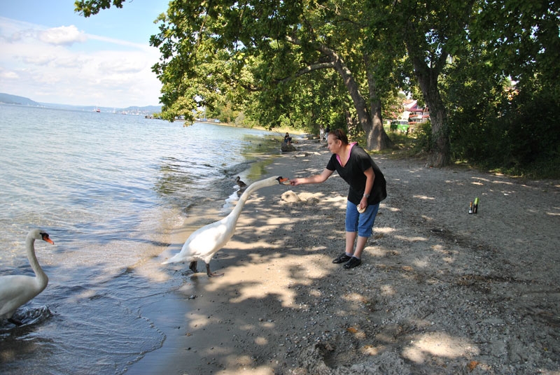 Покормили уток и лебедей, помочили ноги.