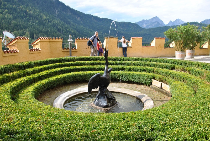 Первым мы посетили замок Хоэншвангау. Он довольно-таки не высоко в горах, поднялись сами.