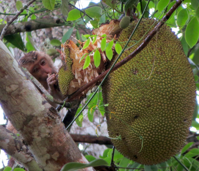 Кто-то оставил в развилке дерева ананас специально для белок: