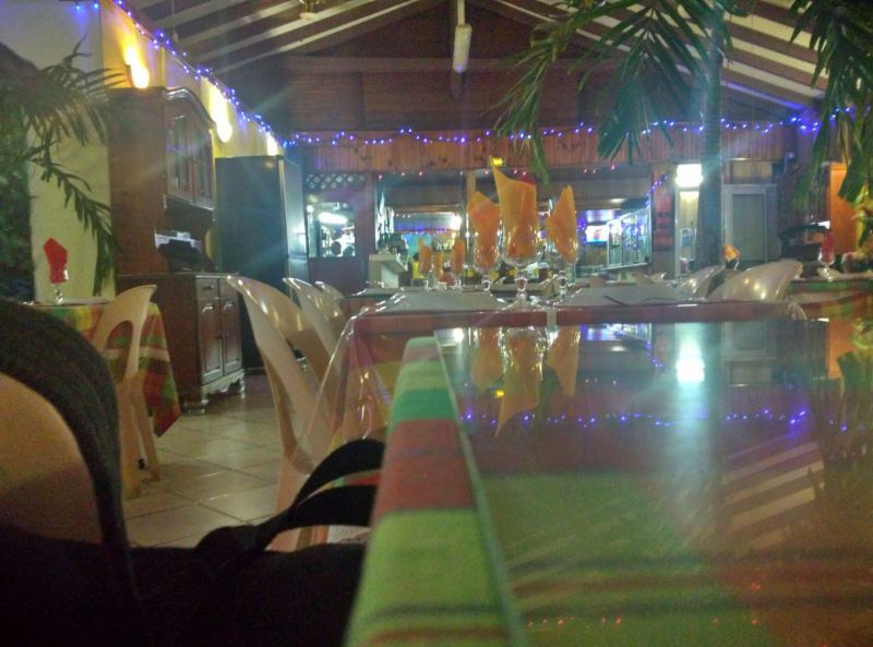 Теперь наконец-то о еде:). Что касается местных супермаркетов, то о них см. выше в разделе о проживании. Относительно местных кафе, то как уже писала выше, местная креольская (а еще точнее антильская) кухня является прекрасным результатом смешения многих гастрономических традиций (французской, местных индейцев, африканской и многочисленных иммигрантов из других стран), соответственно ее надо пробовать в первую очередь. От себя могу порекомендовать заведение Le Mouillage в городке Дезе (Deshaies), неподалеку от того места где мы остановились (на машине минут 20). Фото самого городка (в нем как раз размещается полицейский участок Сент-Оноре из сериала Смерть в раю;), атмосферы этого кафе и некоторых блюд можно посмотреть ниже: