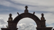 Семейство состояло из папы, мамы, сына лет 16 (очень хорошо выговаривавшего и понимающего англицкие слова), дочки и бабушки (только я не поняла свекрови или тещи). Усадьба состоит из 3-х абсолютно одинаковых по размеру построек: дом, кухня и что-то еще. Очень своеобразный двор и вход в него – полукругом. Над воротами обязательная пара бычков, хранителей и оберегов домашнего очага. Дом – при моем росте 1.72 м входила согнувшись. Окон в доме нет, света тоже нет. Единственный источник света – дверь, которая постоянно держится открытой. Пола в доме нет – «глина» (как в старых гуцульских избах) перемежается кусками камня. Очень похоже на "плитку, которой испорчены все примагазинные территории нашего города, только эта "перуанская плитка" - зачаточное состояние нашей плитки, которая выросла и превратилась в "благо цивилизации", которое хорошо отрубает набойки от каблуков и на которой народу очень замечательно падать. Потолка тоже нет – только крыша, крытая чем-то вроде соломы.