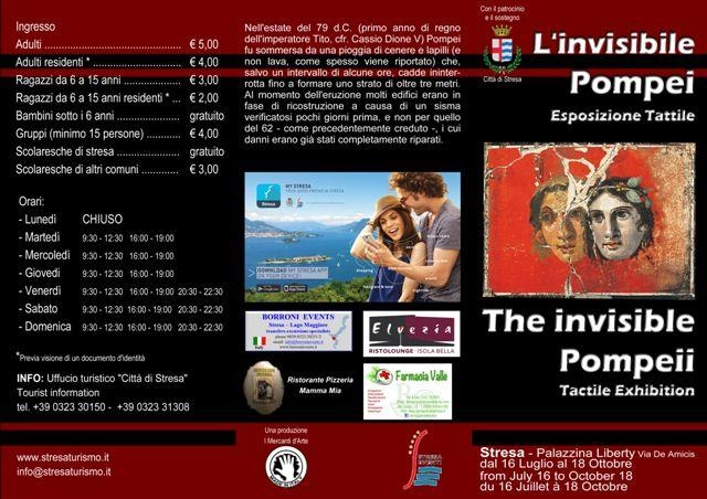 Взяв бумажку об островах на русском языке, тут же, в туристическом, информационном центре мы увидели на стенде анонс выставки "L'invisibile Pompei", которая проходила в Стрезе.
