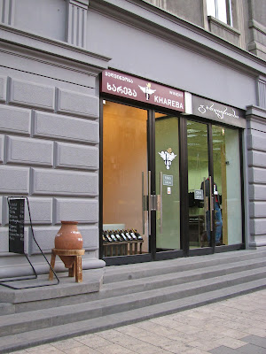 Пришлось нам искать другое место для пропитания. И не зря! Угловое здание без вывески на ул. царицы Тамары (Тамар мепе), за новым зданием в виде сванской башни.
