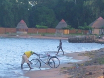 Вообще народ в Малави обаятельный. Таксисты – велосипедисты любовно моют свои велики, а солнце уже заходит, ещё несколько штрихов под закат и возвращаюсь.