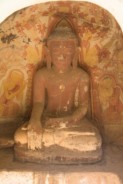 25.12 на второй день пребывания в Моньве поехали в Pho Win Taung caves (#1 на трипэдвайзере). По описанию было видно, что это одно из немногих аутентичных мест на фоне всего остального новодела. Добираться было решено также на арендном байке. Но придя утром на ресепшн чтобы взять ключи от нашей желтенькой хонды, нас ждал эпик фэйл. Единственный байк был сдан (урок #3 - лучше все бронировать по возможности заранее, можно ведь было предыдущим вечером сказать, что байк нам потребуется на следующий день). С прокатными конторами в Моньве туго, т.к город совсем не туристический. Дошли до следующей гостиницы (Golden arrow) и взяли байк там (т.к. у местного байк-оунера был в наличии только старый китайский мопед, а мы упорно настаивали и тыкали пальцем на стоящий рядом новенький байк, то он призвал свою жену, у которой был тоже новый розовый байк с микки-маусами, на котором мы и отправились. Вышло подороже - 18 000 кьят). До пещер хорошая дорога, но достаточно далеко - 45км. Но оно того стоило - настоящие аутентичные храмы, выдолбленные прямо в скалах, древняя резьба по камню и росписи - в общем, здорово. За нами увязался сопровождать и показывать местный мальчонка, за что и получил тысячу. Ему было завещано учить английский с обещанием заплатить за "экскурсию" в этом случае в два раза больше.