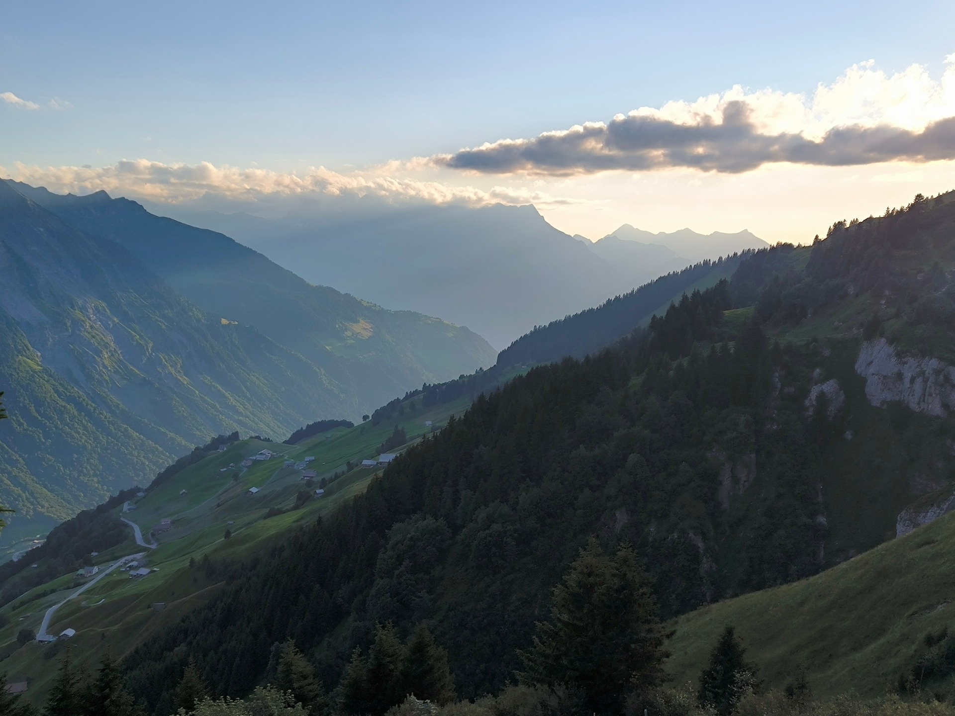 Учитывая, что уже глубоко вторая половина дня, задача - набрать высоту и уйти подальше от жилья, чтобы спокойно поставить палатку. Скажу заранее, что с этой задачей на "единичке" всю дорогу было тяжело - в отличие от всех ранее пройденных треков. Via Alpina проходит через центр Швейцарии, который хорошо так заселен - хутор на хуторе, местечко на местечке, а как только отойдешь на приемлемое расстояние от жилья - так рельеф мешает нормально встать. Вот такой рельеф, к примеру.
