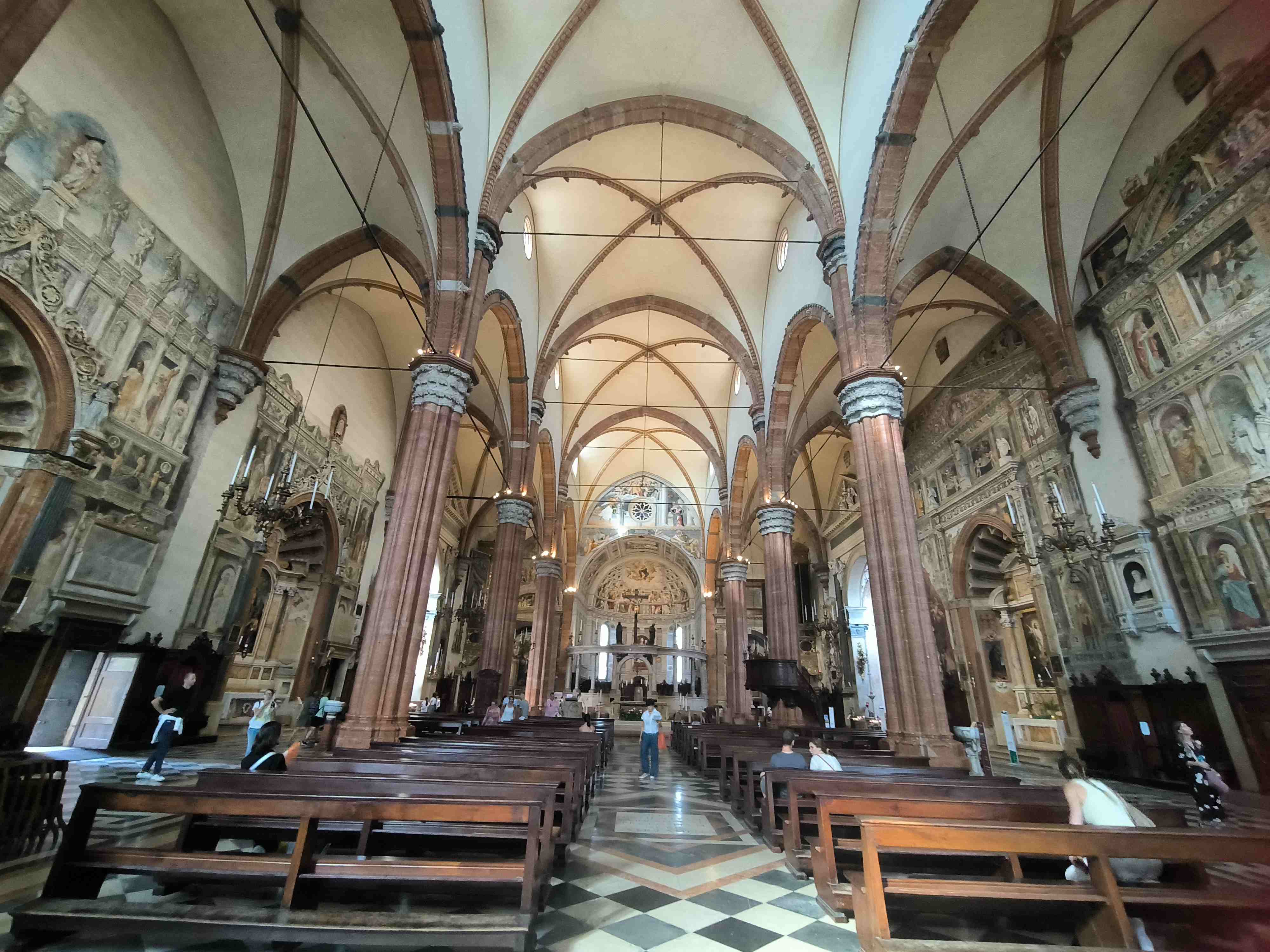 Пройдясь среди "ласточкиных хвостов", поспешила на площадь делле Эрбе, по пути купила грушу, сыр и бутылочку апероля. Очень удобно было все это слопать у фонтана - и сидишь с комфортом, и руки моешь после сочной груши. Всё бы хорошо, только небо начинало хмуриться - а ведь предстояло слушать оперу под открытым небом!