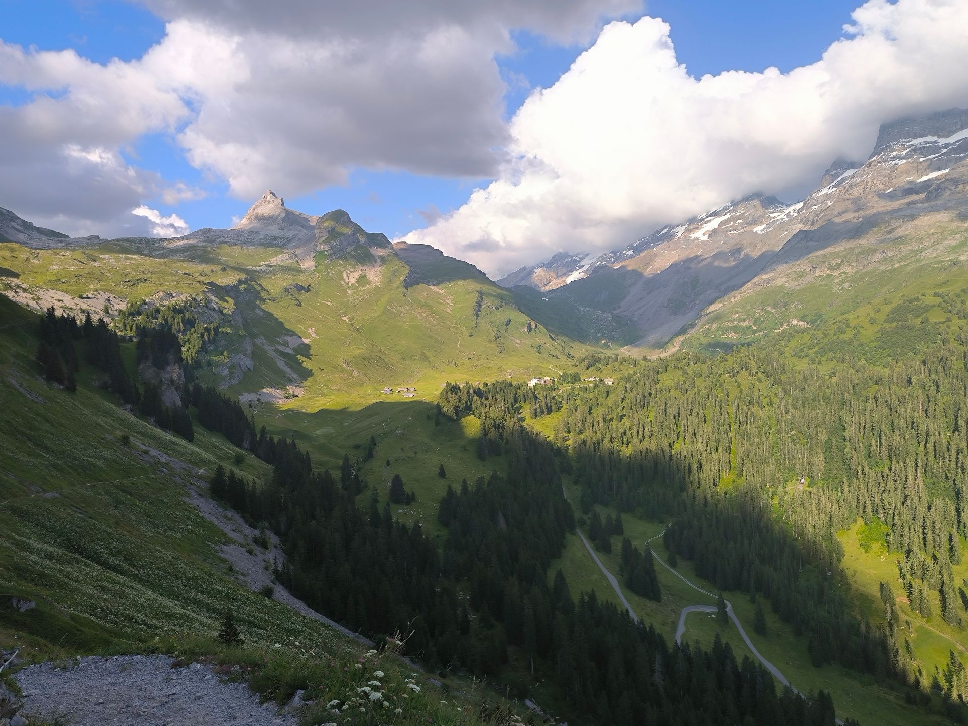 Дождь лил как бешеный весь вечер, всю ночь и утро. Только ближе к полудню он стих. Воспользовавшись мудрым советом девушки с ресепшен и картой, дающей право на скидку на автобус, я сэкономила пару-тройку часов дороги, поднявшись на автобусе до местечка Alp Nagens. Было свежо, но того, что началось буквально через сорок минут, я не очень ожидала.