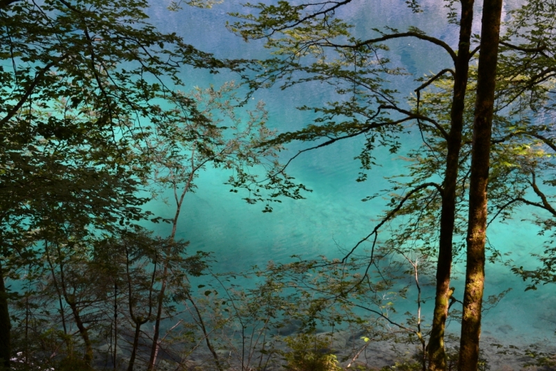 В жару мы там непременно купались: плыть в таком изумрудном озере, отражающем зеленые горы – это сродни медитации! В озеро впадают горные ручьи, вода у берега холоднее, чем посередине. Я теперь и в московском бассейне пытаюсь себе баварское озеро представить. Парковка есть вдоль дороги бесплатная, если мест нет, то можно проехать в тупик за озером к ресторану, там платно около 3Е, пляж есть платный и бесплатный (мы отличий не нашли). И кругом на мелководье форель! Огромная! Эх, на сковородочку бы ее..